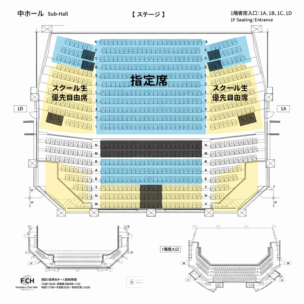 スクール生は1階の「スクール生優先自由席」をご利用いただけます(画像参照)